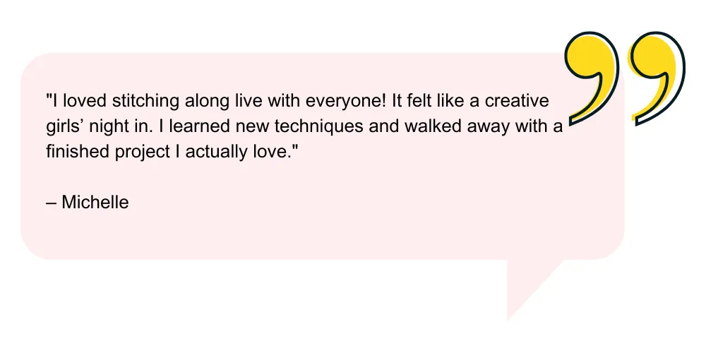 Step-by-step walkthroughs to stitch along live with plus full Q&As